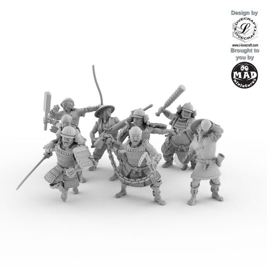 The original Nippon Saga campaign was designed in 28 mm heroic scale, which in practice corresponds more closely to 32 mm true scale. Until now, we offered this original version under the 28 mm label — which was incorrect. To make things clearer and give you more flexibility, we now provide both options: the original 32 mm version (as designed by Iain Lovecraft) and a newly downscaled true 28 mm version (in progress) for those who prefer full compatibility with traditional 28 mm tabletop ranges.