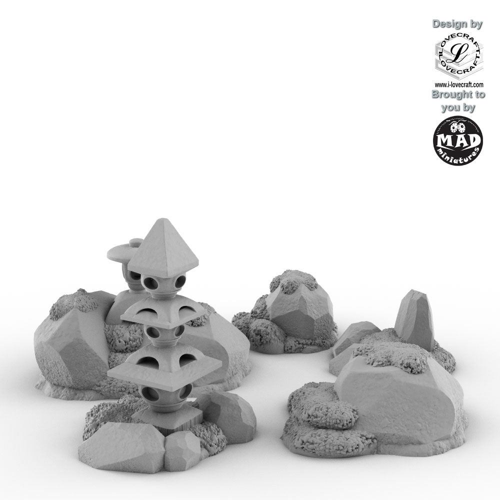 These decorations were designed by Iain Lovecraft and made by Mad Miniatures. They come unpainted.