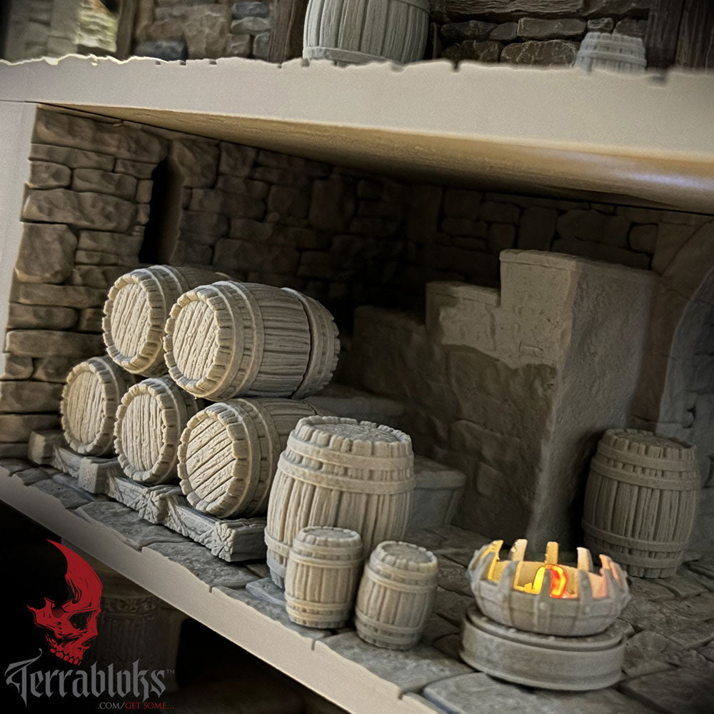 These barrels come from the cellars of TERRABLOKS and made by Mad Miniatures. They come unpainted.
