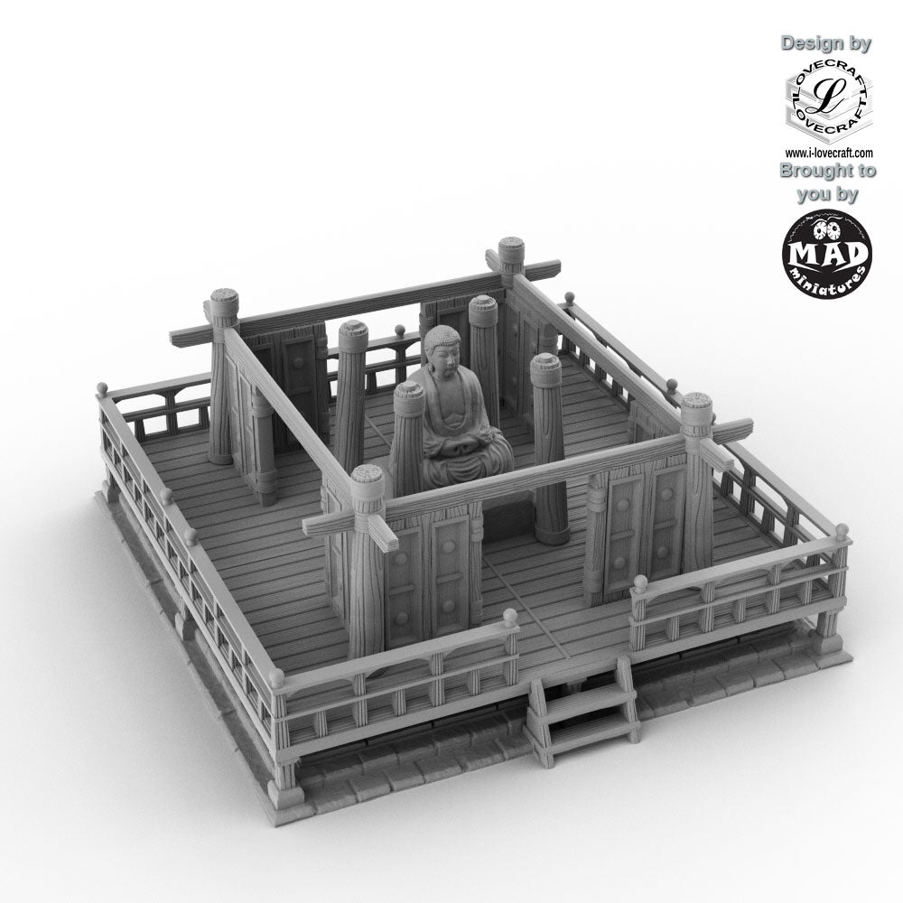 The Buddha Temple was designed by Iain Lovecraft and made by Mad Miniatures. It comes unpainted.