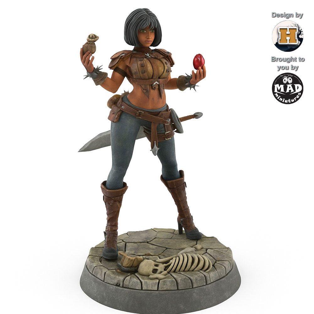 A dynamic addition to any tabletop campaign, Crimson embodies the spirit of a daring explorer, blending mystery, combat skill, and a touch of mischief.