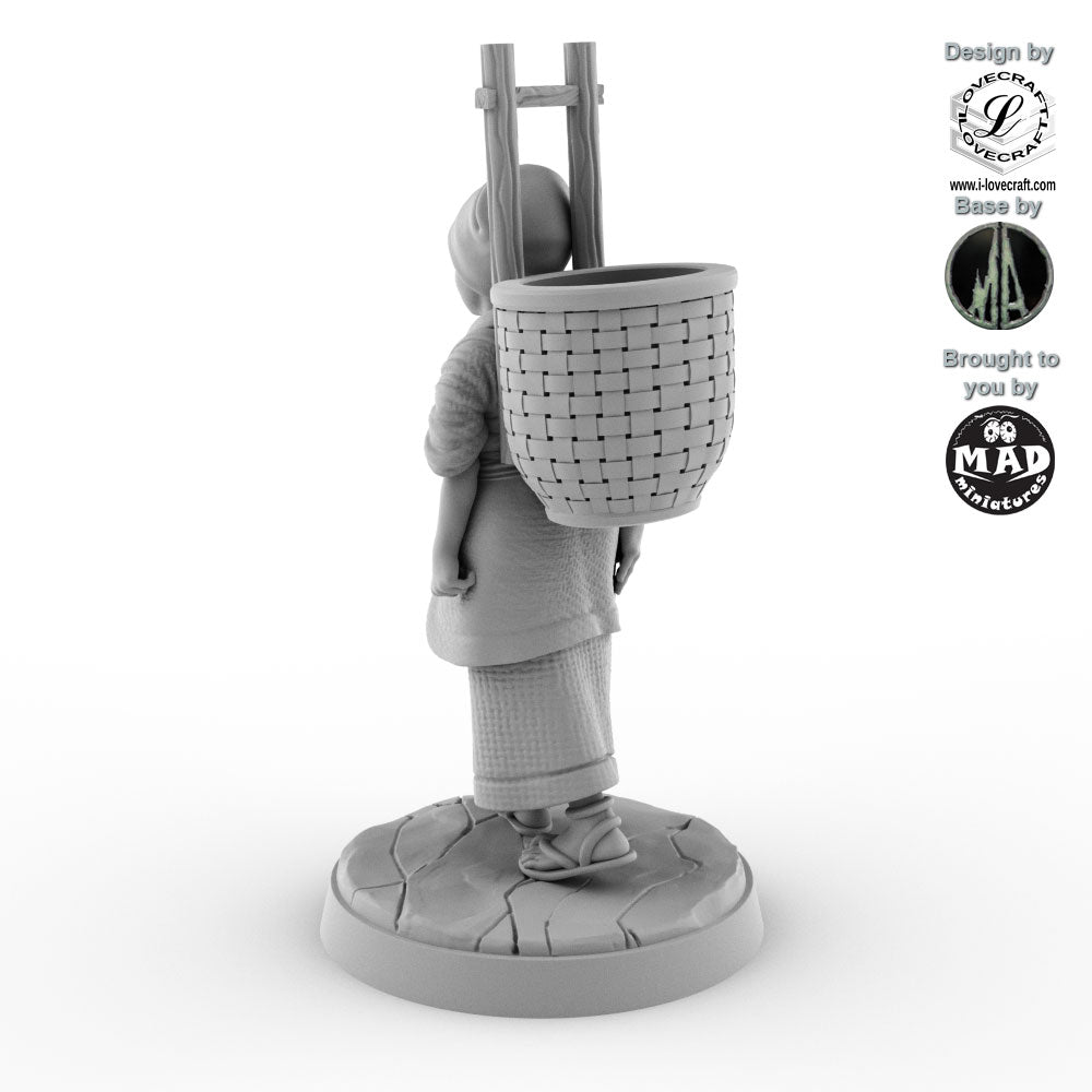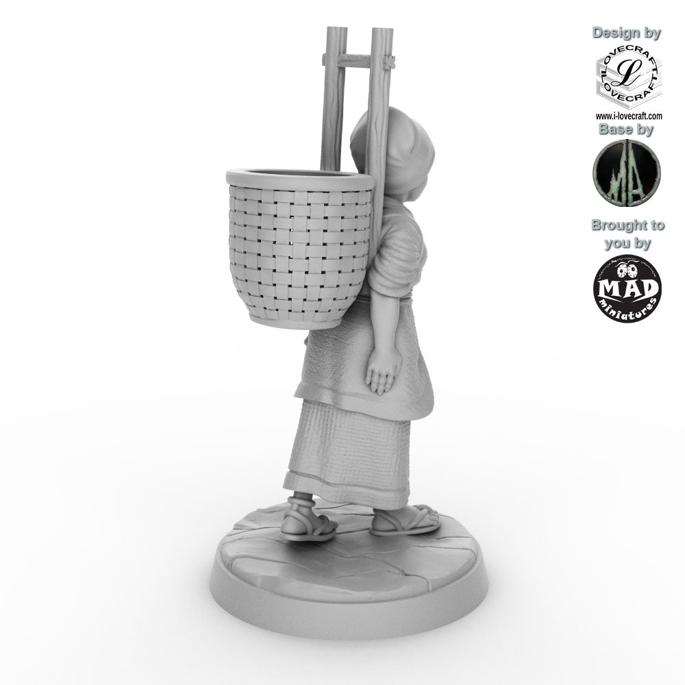 Perfect for adding authenticity to village scenes, marketplaces, or peaceful moments in your Nippon Saga collection, this miniature brings warmth and realism to your tabletop. Each detail — from the texture of the basket to the folds of her robe — tells a story of diligence and grace.