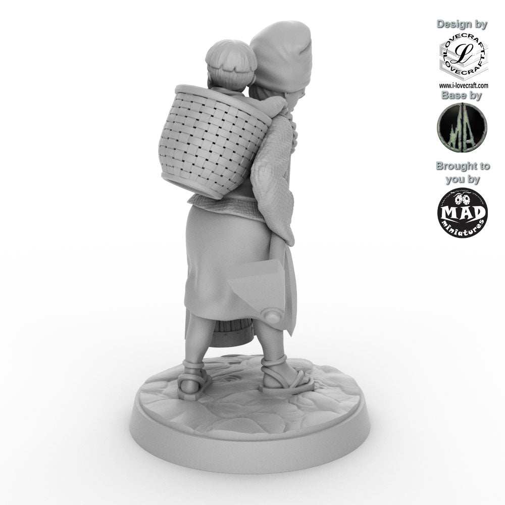 This miniature captures a beautifully human moment — the balance between duty and care, between toil and devotion. The detailed sculpting of her garments, the texture of the basket, and the gentle expression on both faces bring a touch of realism and warmth to your Nippon Saga collection.