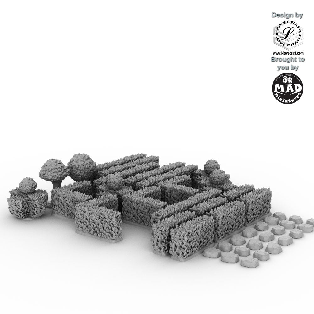 These hedge were carefully grown and designed by Iain Lovecraft and made by Mad Miniatures. They come unpainted.