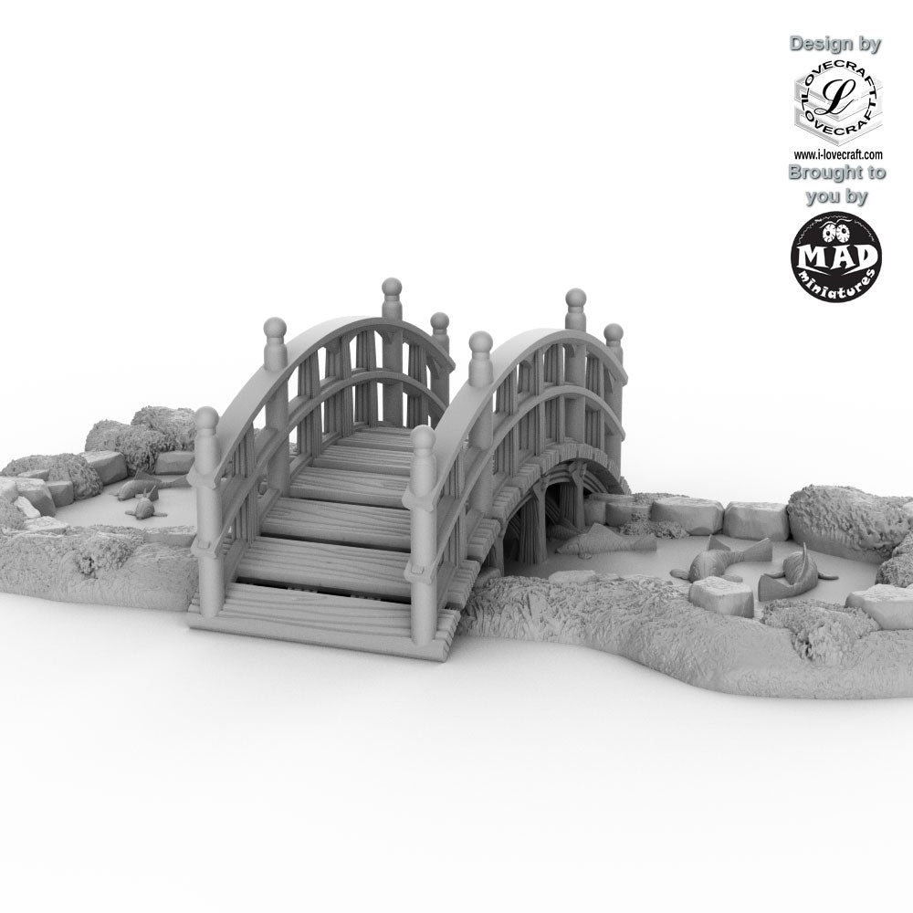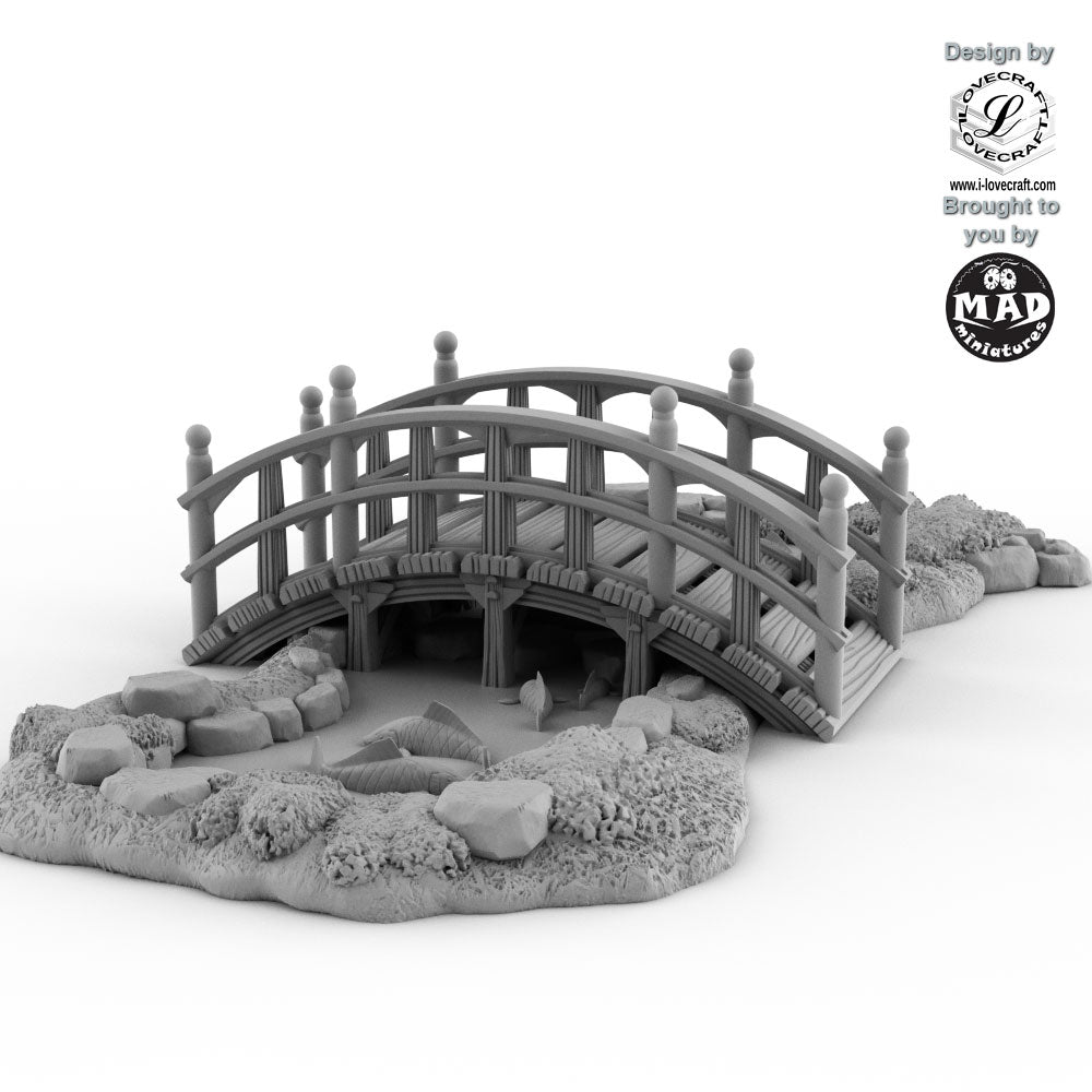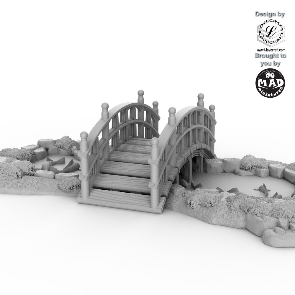 Cross into the tranquil world of Nippon Saga with this beautifully detailed Guzei Bridge & Pond terrain piece. Inspired by traditional shrine architecture, the elegant arched bridge spans a koi-filled pond surrounded by sculpted stones and lush greenery, evoking the serenity of a sacred garden.