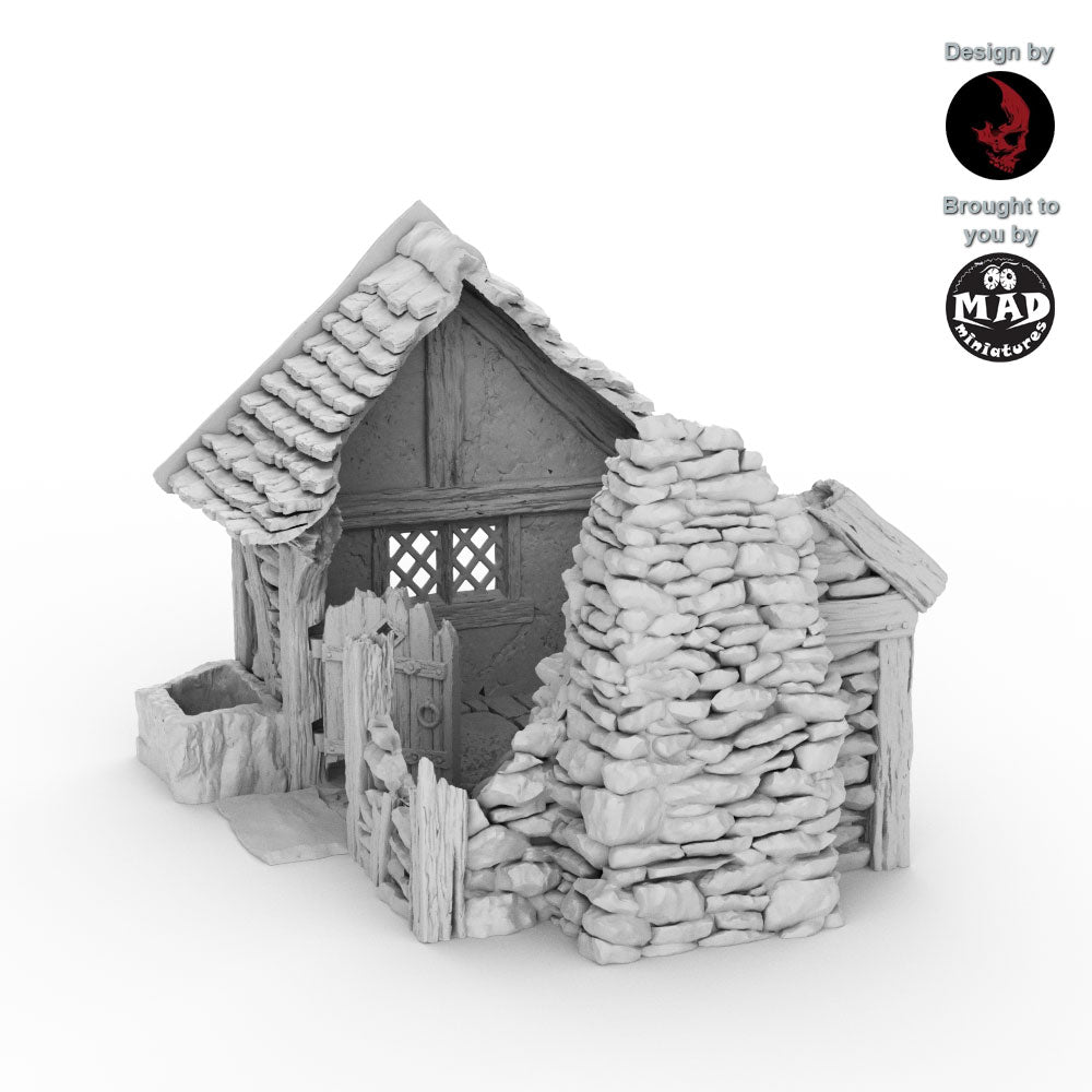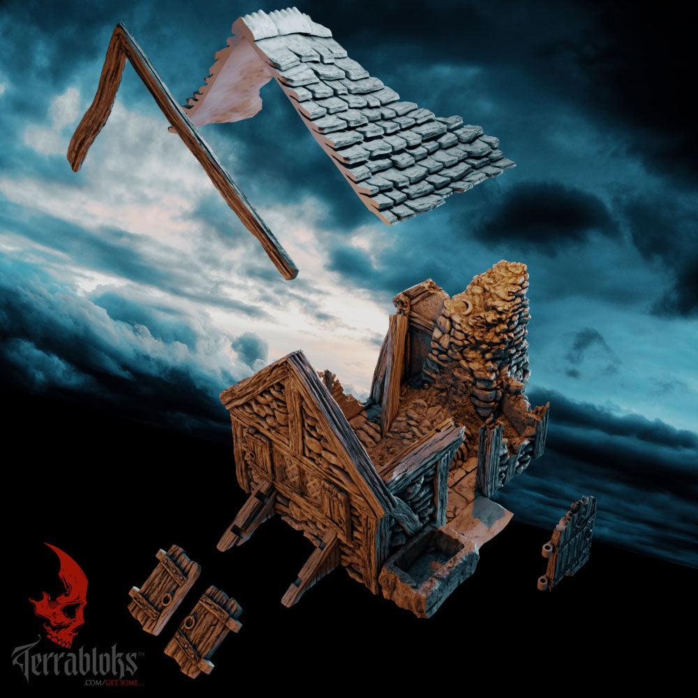 Granny's Cottage ruined was designed by TERRABLOKS and made by Mad Miniatures. It comes unpainted.