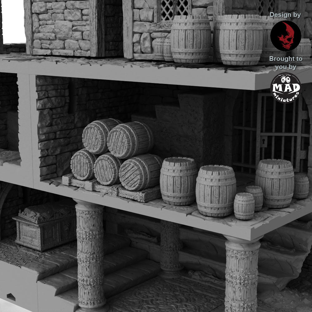 ✔️ Barrels – for storing goods or flipping during a bar fight