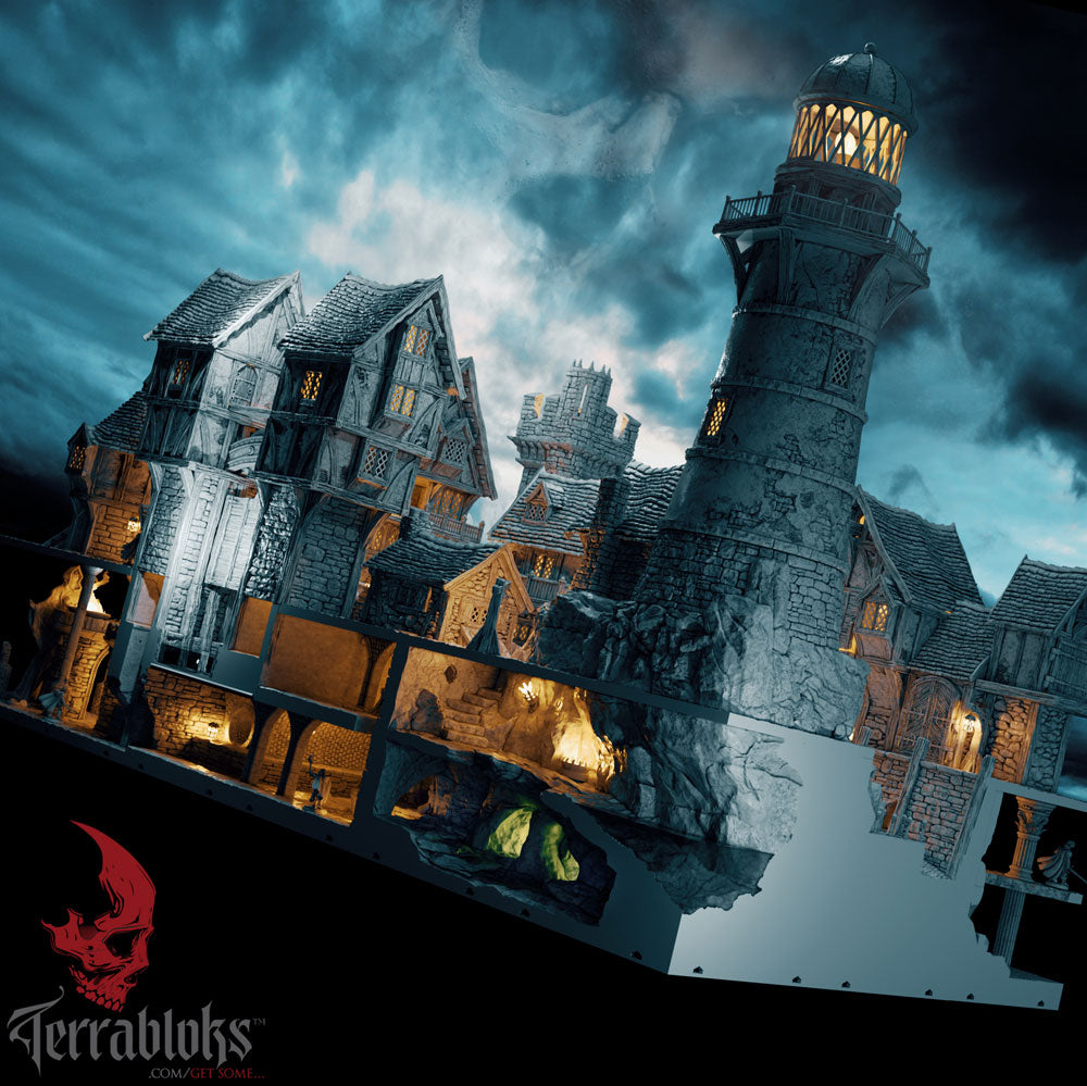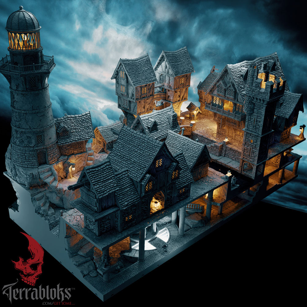 With canals cutting through the cobbled streets and hidden corners inviting trouble, TERRABLOK B offers both vertical gameplay and immersive storytelling. Every building is fully playable, and the accessories allow you to light up the board with atmospheric LED-ready pieces.