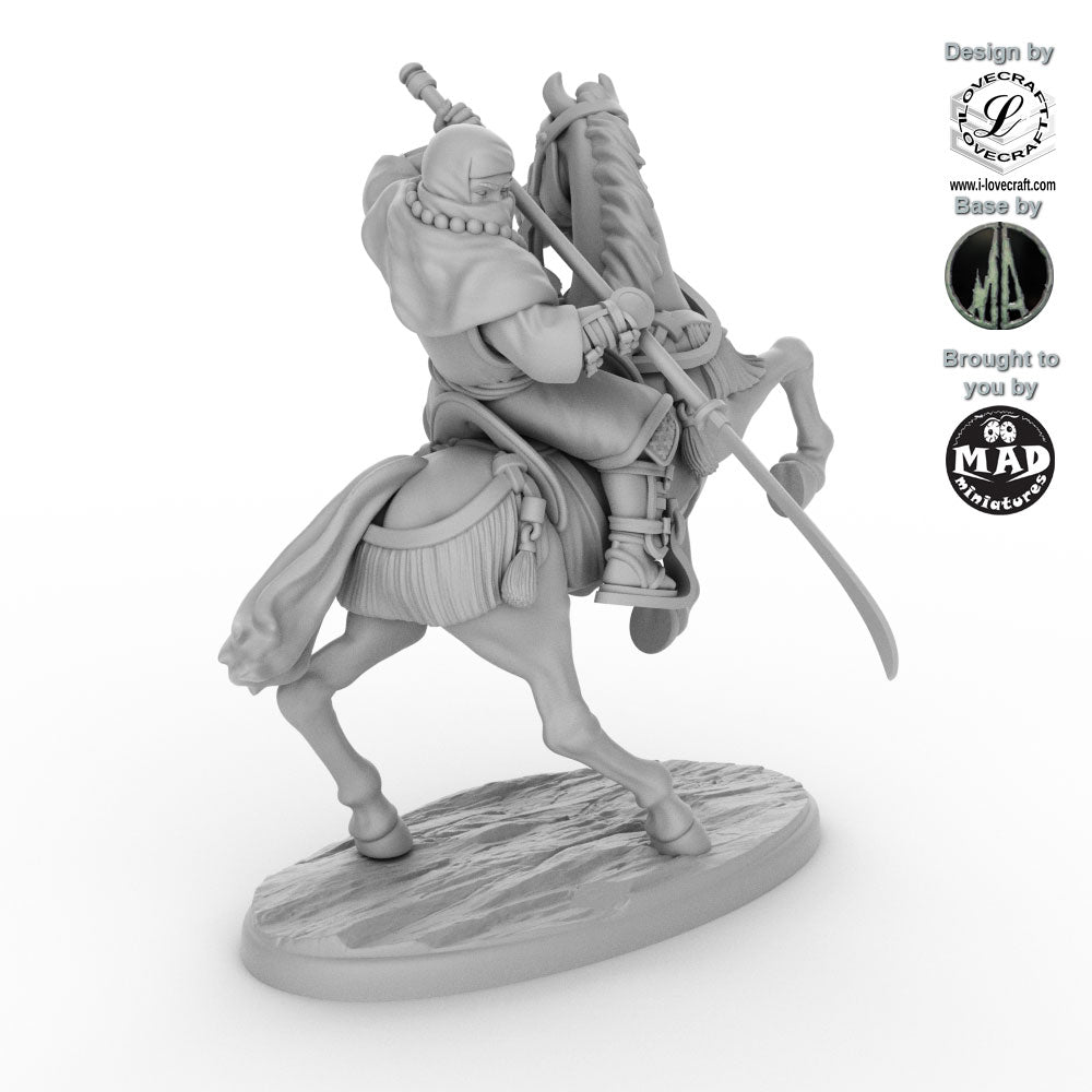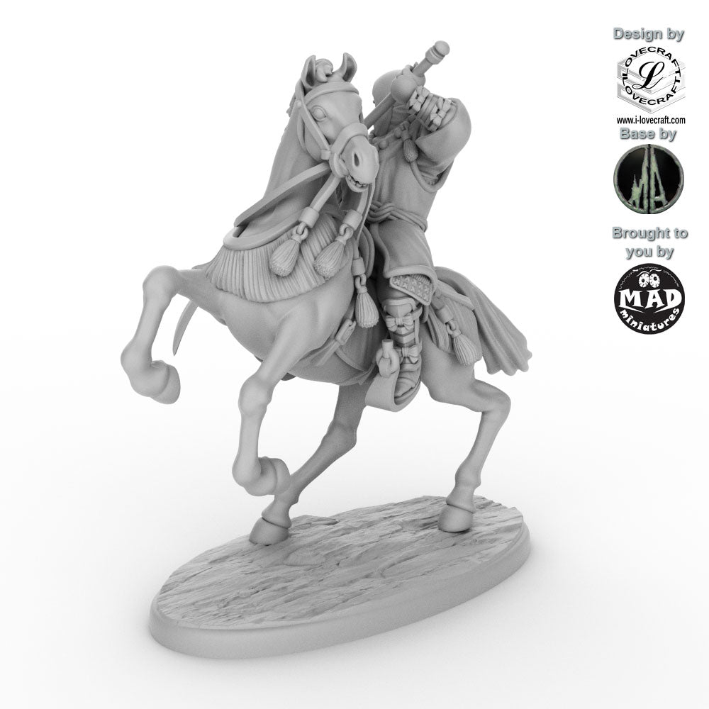 Silent as prayer, swift as vengeance — the Mounted Ikko-Ikki Monk known as The Silent Tempest rides into battle with his naginata raised high. Cloaked in humble robes yet filled with unshakable conviction, he channels the fury of faith into every strike. His horse rears beneath him like a spirit of war, carrying the weight of rebellion and divine justice.