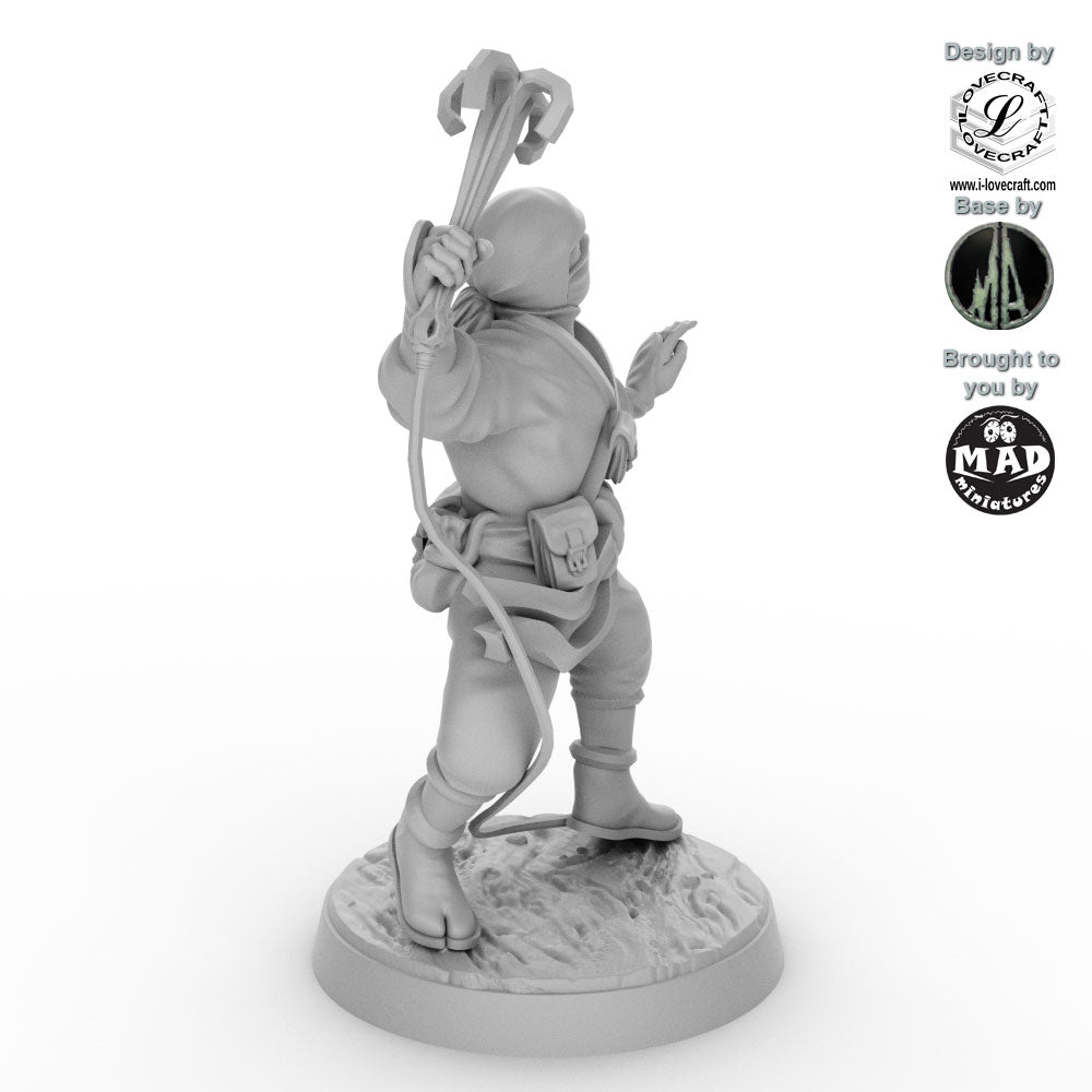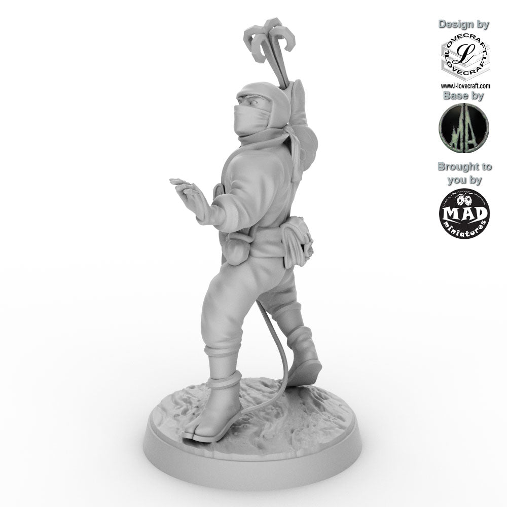 This Ninja was designed by Iain Lovecraft and made by Mad Miniatures. He comes unpainted and with a separate base as shown in the grey renders. The base was designed by Monolith Arts.