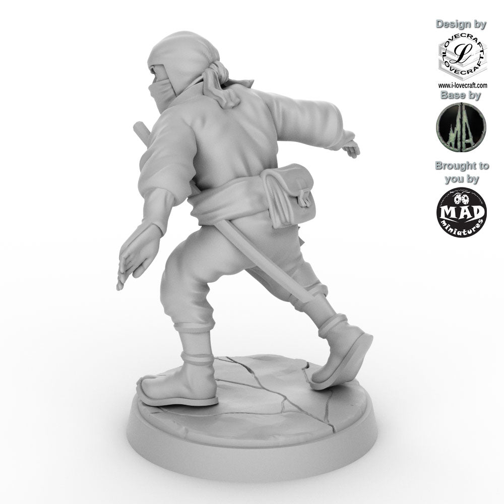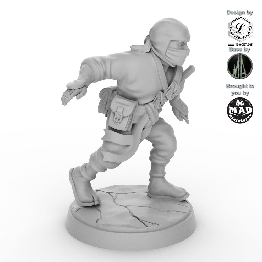 This Ninja was designed by Iain Lovecraft and made by Mad Miniatures. He comes unpainted and with a separate base as shown in the grey renders. The base was designed by Monolith Arts.