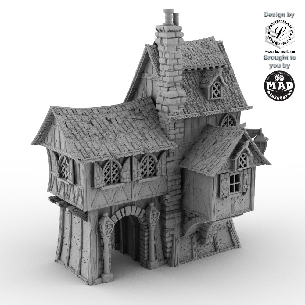 This building was designed by Iain Lovecraft and made by Mad Miniatures. It comes unpainted and needs to be assembled.