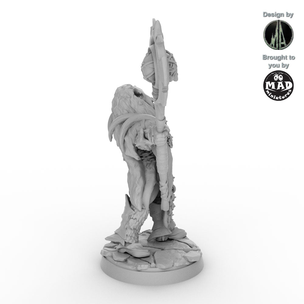 Together, they form a coven of shamans, a terrifying priesthood of the orc tribes. As individuals, each one can stand as a lone spellcaster, warband guide, or ritual leader. Painters will delight in the intricate textures of fur, bone, and rune-engraved staffs, while gamers will find them the perfect conduits of mystical power on their tabletop.