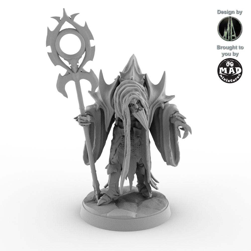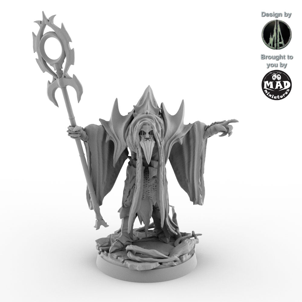 This set includes five unique Warlocks, each with their own stance, mask, and weapon of power. From crescent-bladed staffs to twisted arcane sigils, every sculpt captures a different face of dark sorcery. Their jagged robes, claw-like hands, and eerie masks give them an unforgettable presence at the head of any warband.