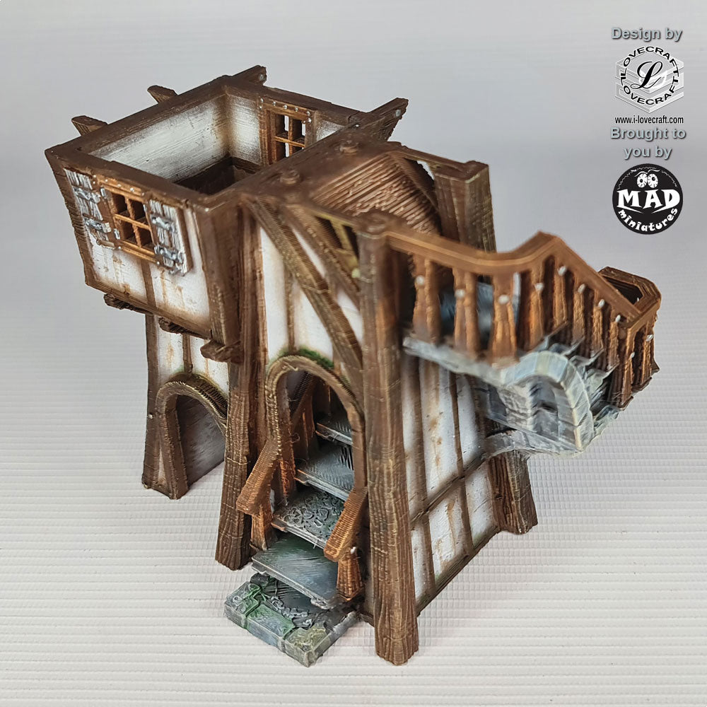 This building was designed by Iain Lovecraft and made by Mad Miniatures. It comes unpainted and needs to be assembled.