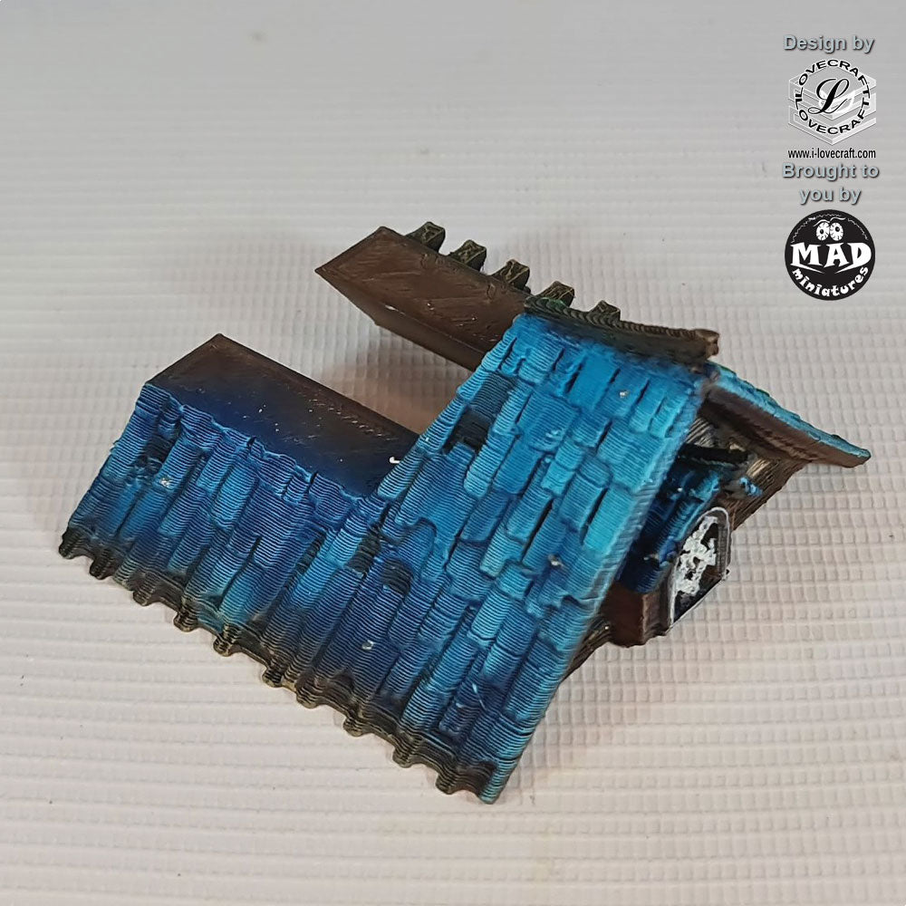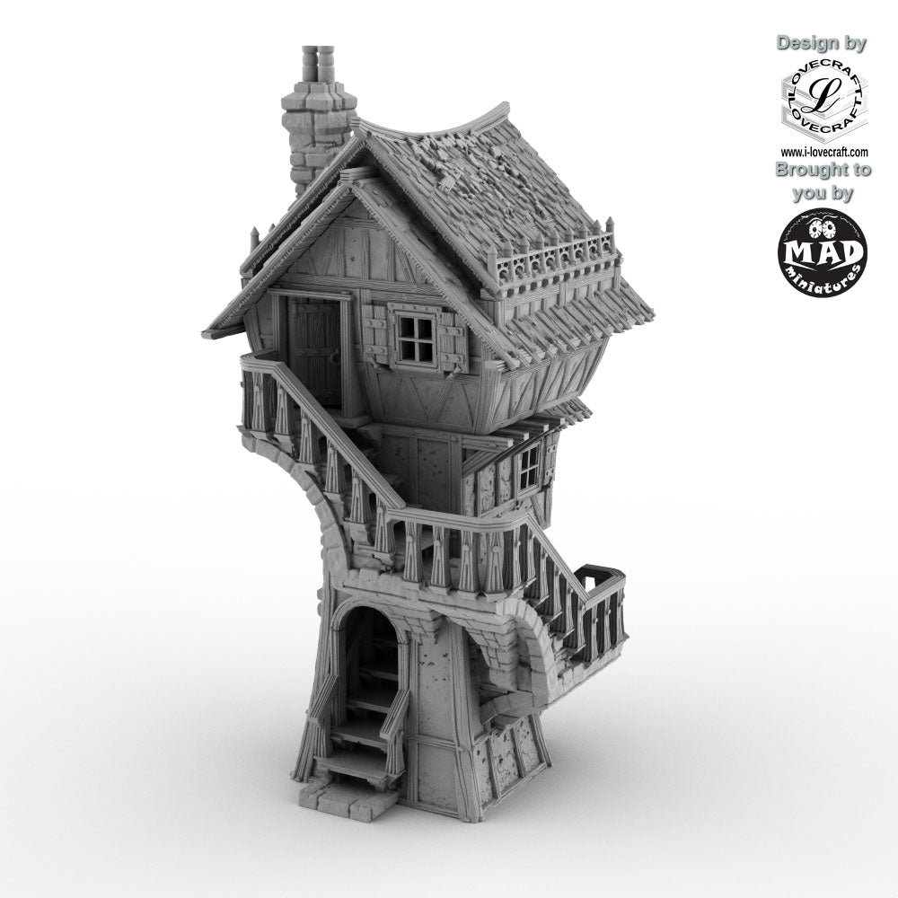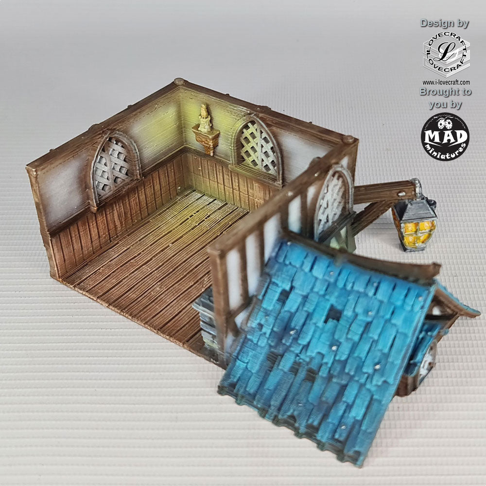 This building was designed by Iain Lovecraft and made by Mad Miniatures. It comes unpainted and needs to be assembled.