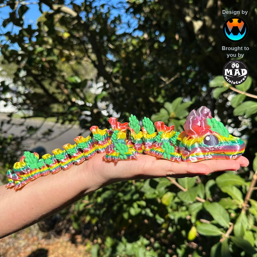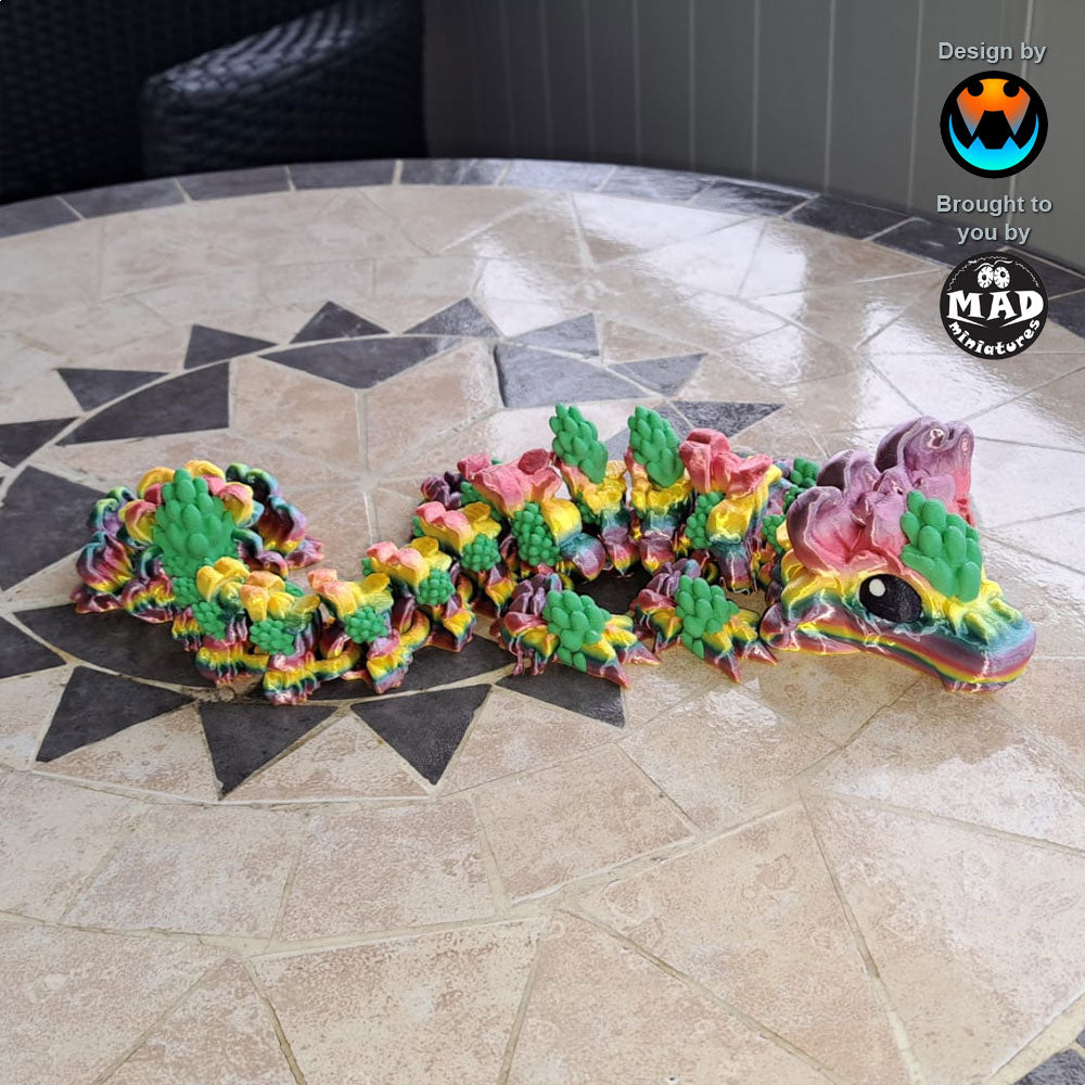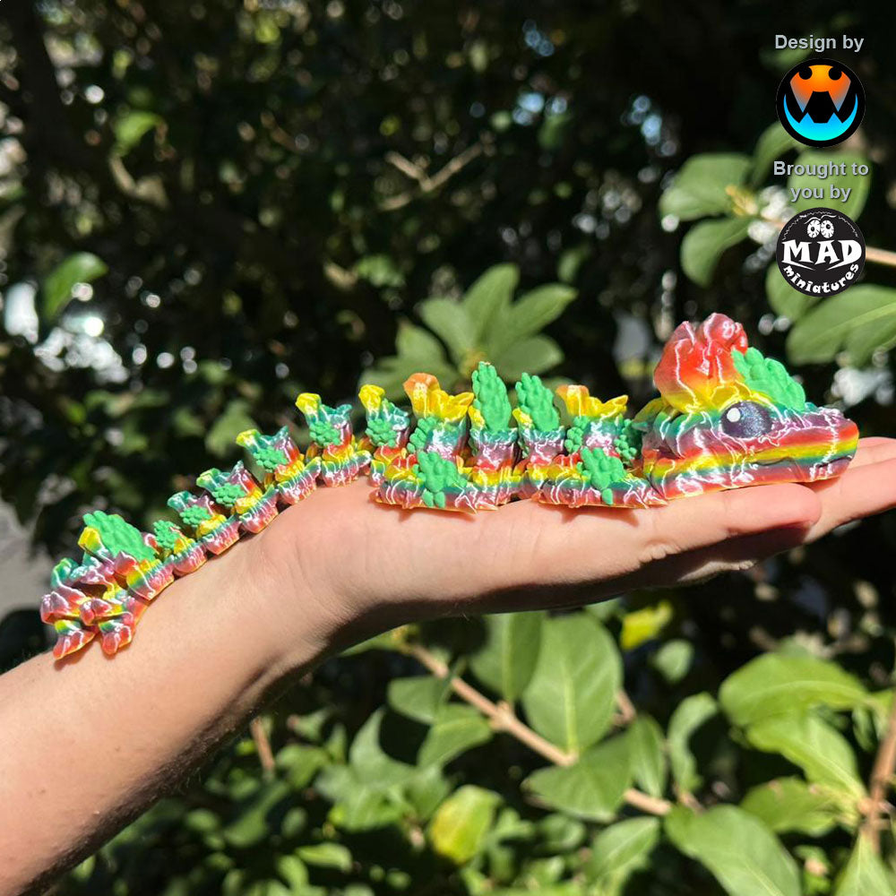 Printed in a dazzling rainbow filament with soft plant-green highlights, it mirrors the colours of a real snapdragon plant just before it blooms—bright, vibrant, and full of life. Its sculpted petals flow down a twisting, articulated body that feels like a vine come to life. Touch it, move it, pose it—every segment wiggles with satisfying fidgety fun.