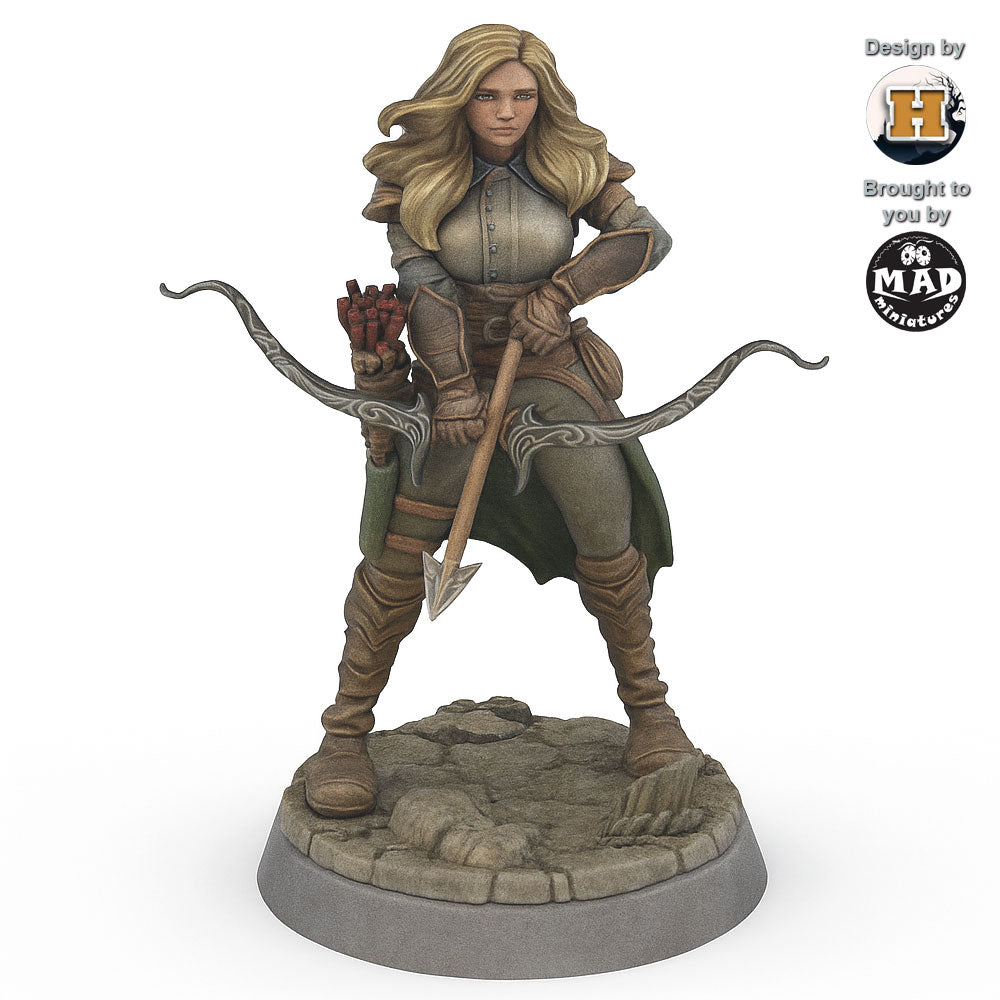 Stiga moves with the quiet confidence of someone who knows her craft. Clad in light leather armor and sturdy boots, she is always ready for the road ahead. A quiver full of arrows rests on her back, each one meticulously crafted, while her bow remains within easy reach. Her movements are fluid, her aim precise, and her shots lightning-fast—feared by those who dare to stand in her way.
