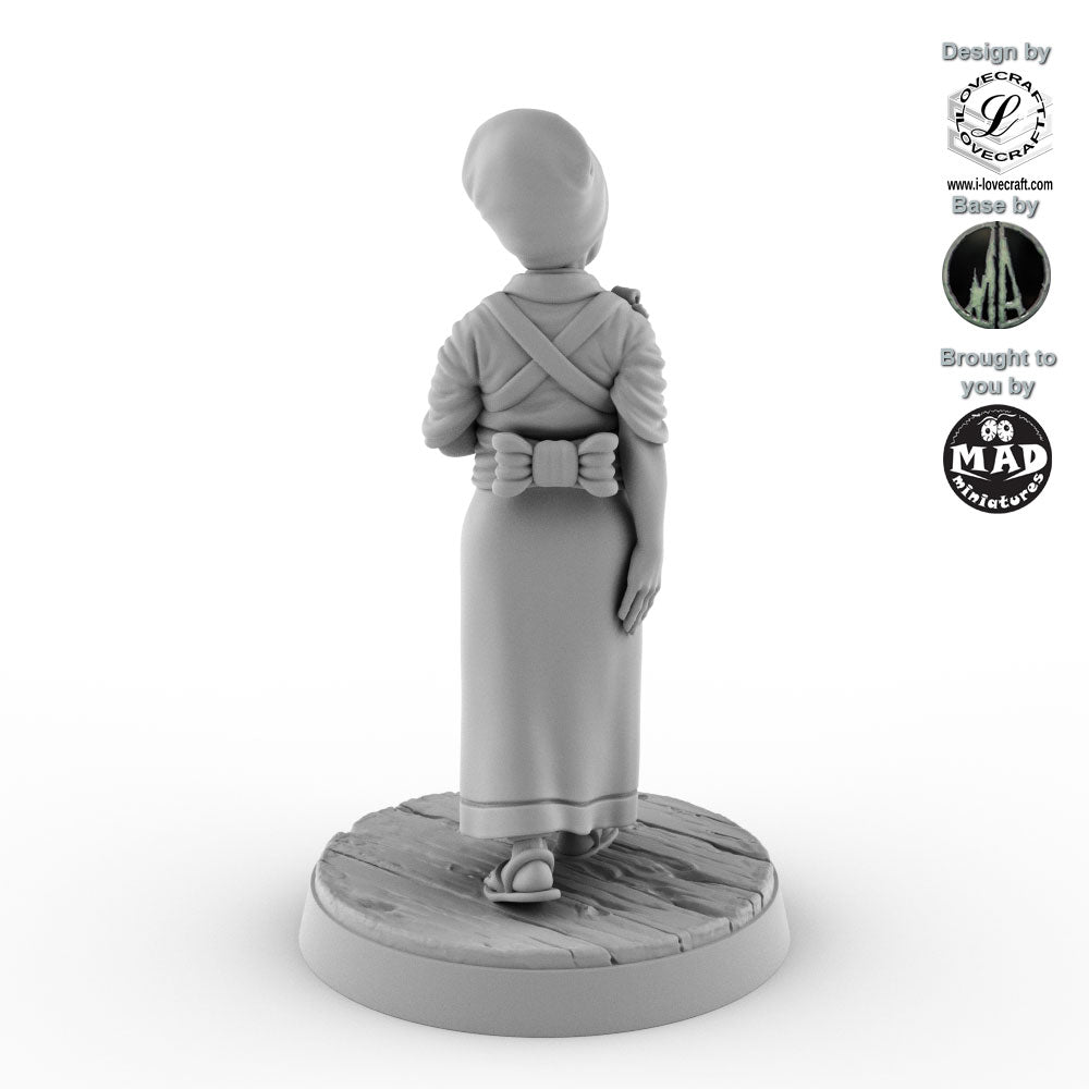 The Tea Lady was designed by Iain Lovecraft and made by Mad Miniatures. She comes unpainted and with a separate base as shown in the grey renders. The base was designed by Monolith Arts.