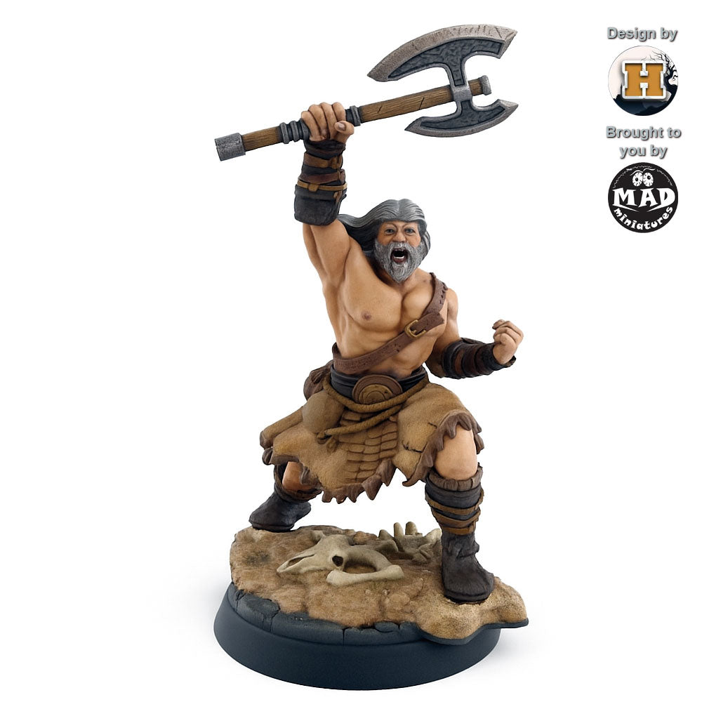 Virtix, a barbarian giant carved from muscle and fury, wields his double-bladed battle axe with devastating precision. With his long hair and beard wild as a storm, and his fur-draped skirt and massive boots grounding him like a force of nature, he is the embodiment of raw power. Driven by an unshakable code of honor, Virtix fights not for glory but to defend his clan and the ancient traditions that bind his people together.